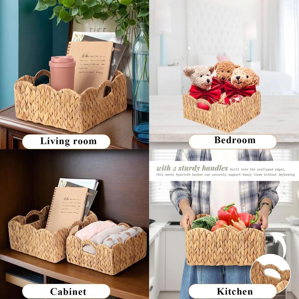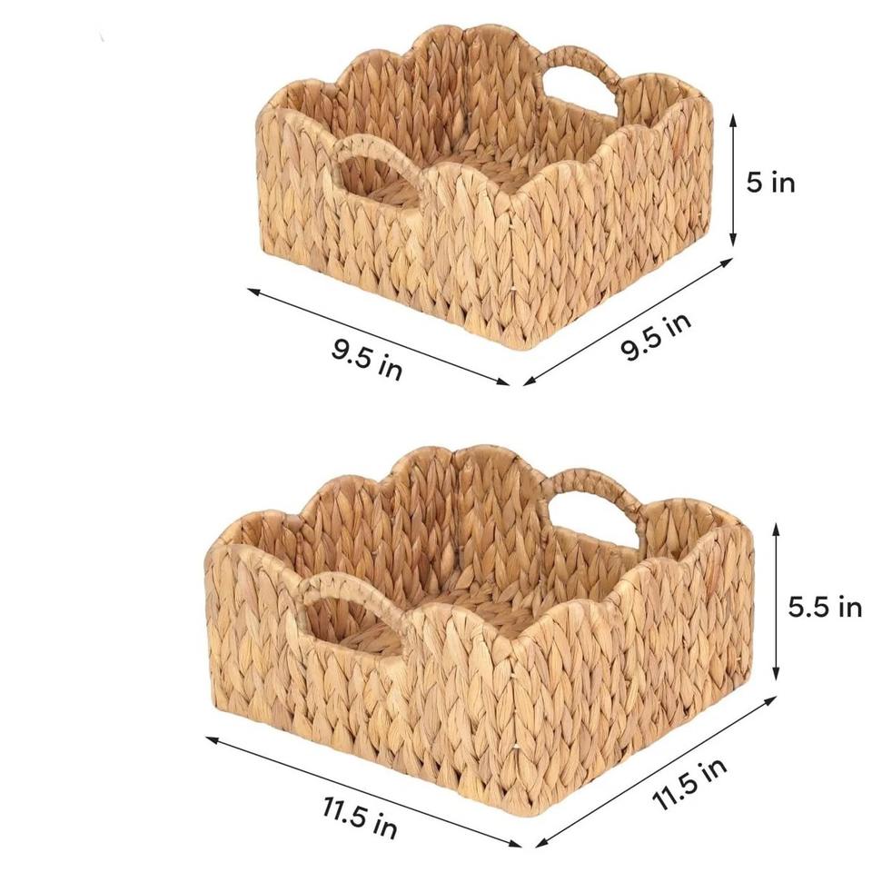 Tamaño: L: Ancho 11,5 x Alto 5,5 M: Ancho 9,5 x Alto 5 pulgadas:Juego de 2 cestas tejidas cuadradas con aberturas en forma de concha.