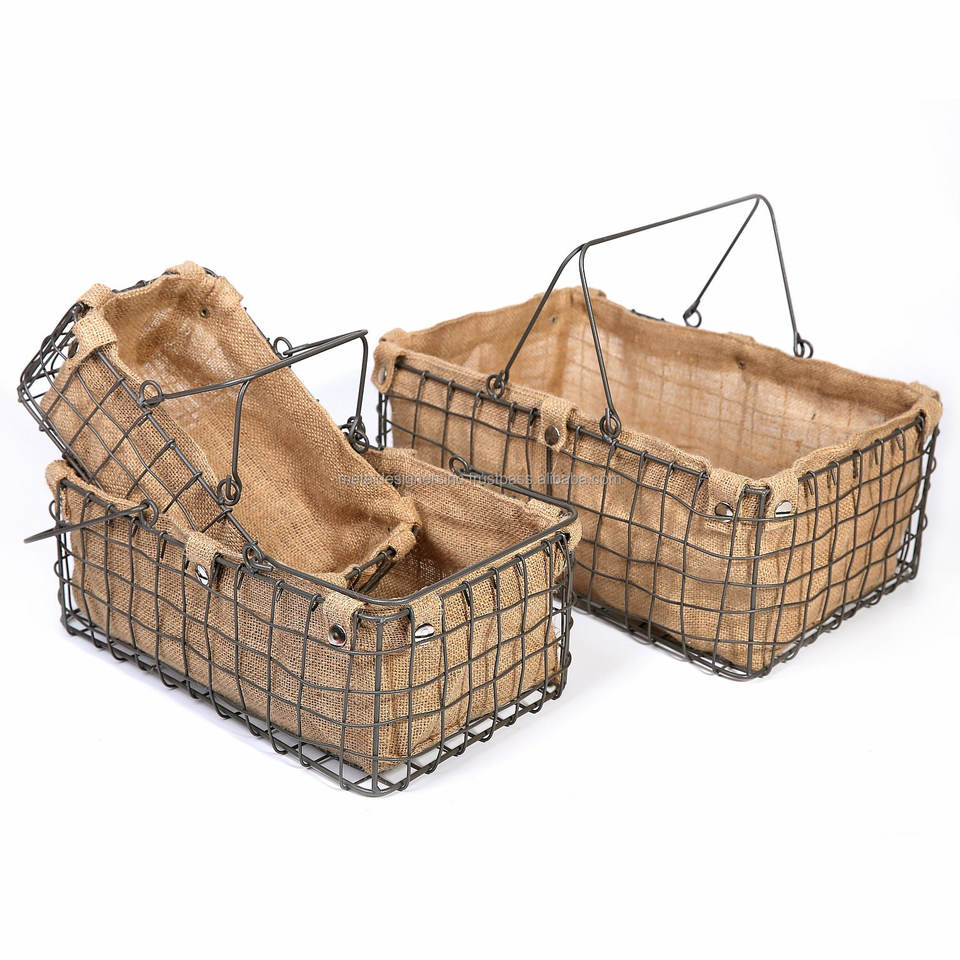 Nombre del producto:Cestas de alambre de metal y yute SET/3