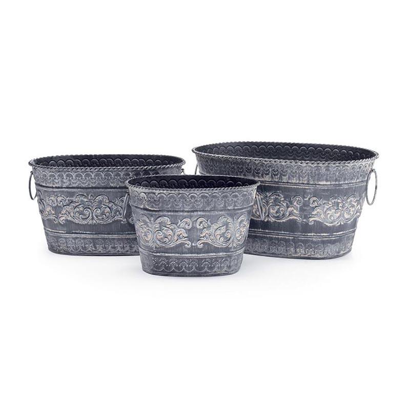 Product Name:Set of 3 Oval Tin Planter Decoration
