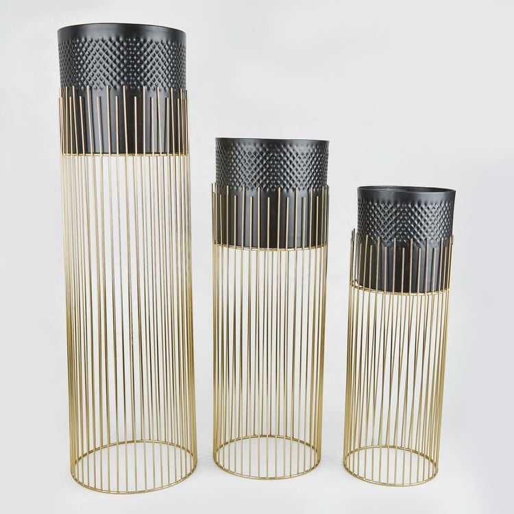 Juego de 3 macetas de metal dorado hechas a mano, estilo costero, precio al por mayor de gran venta, maceta y jarrón para bodas