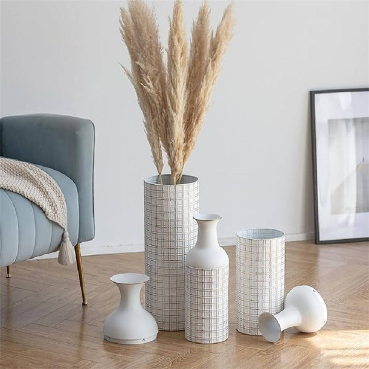 Juego de 3 jarrones grandes de pie, jarrones de Metal de suelo Vintage para el hogar, sala de estar, interior, exterior, arreglo de paisajismo