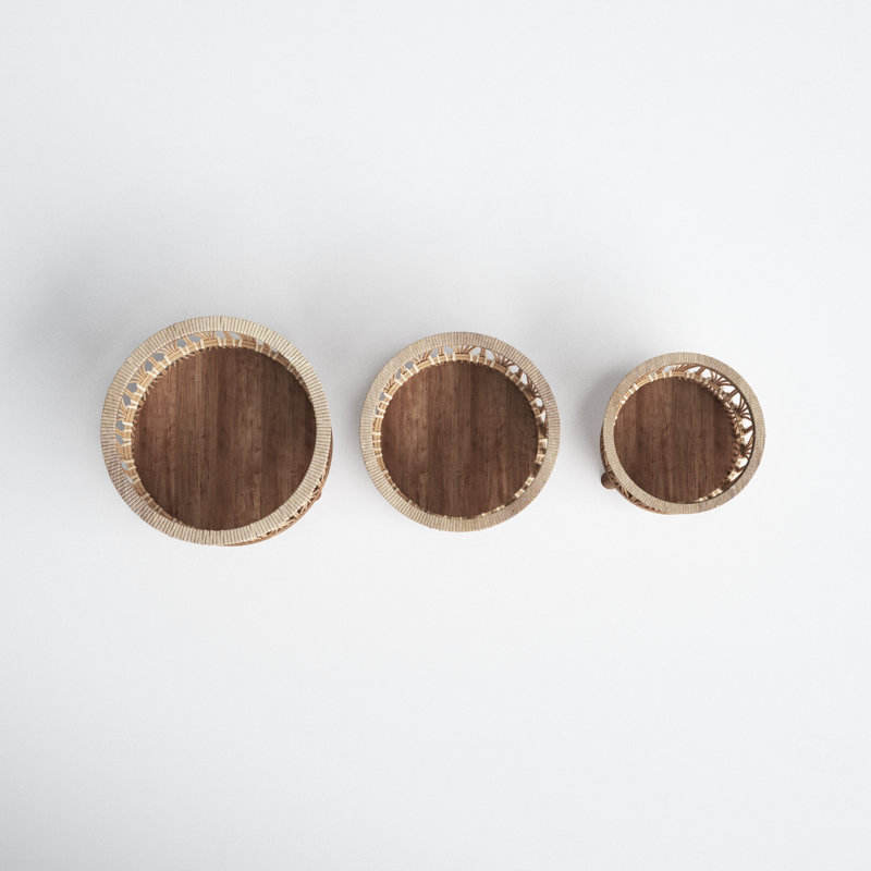 Juego de 3 cestas con patas de bambú tejidas redondas modernas, almacenamiento de tela hecho a mano para cocina y sala de estar para comida y maceta