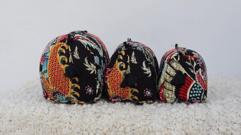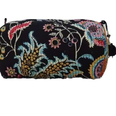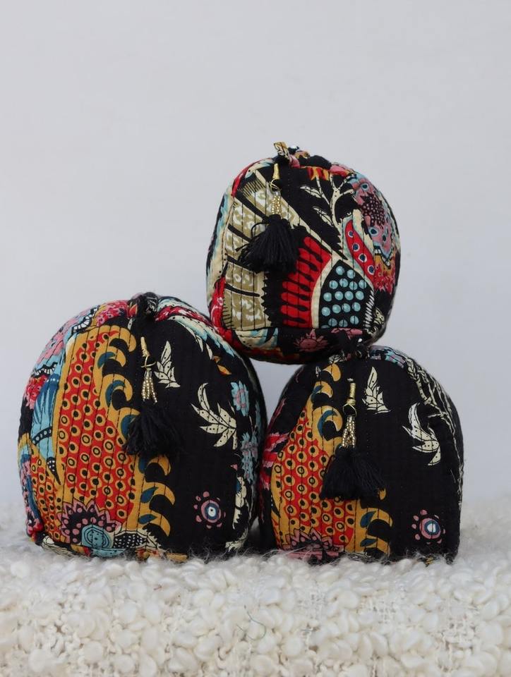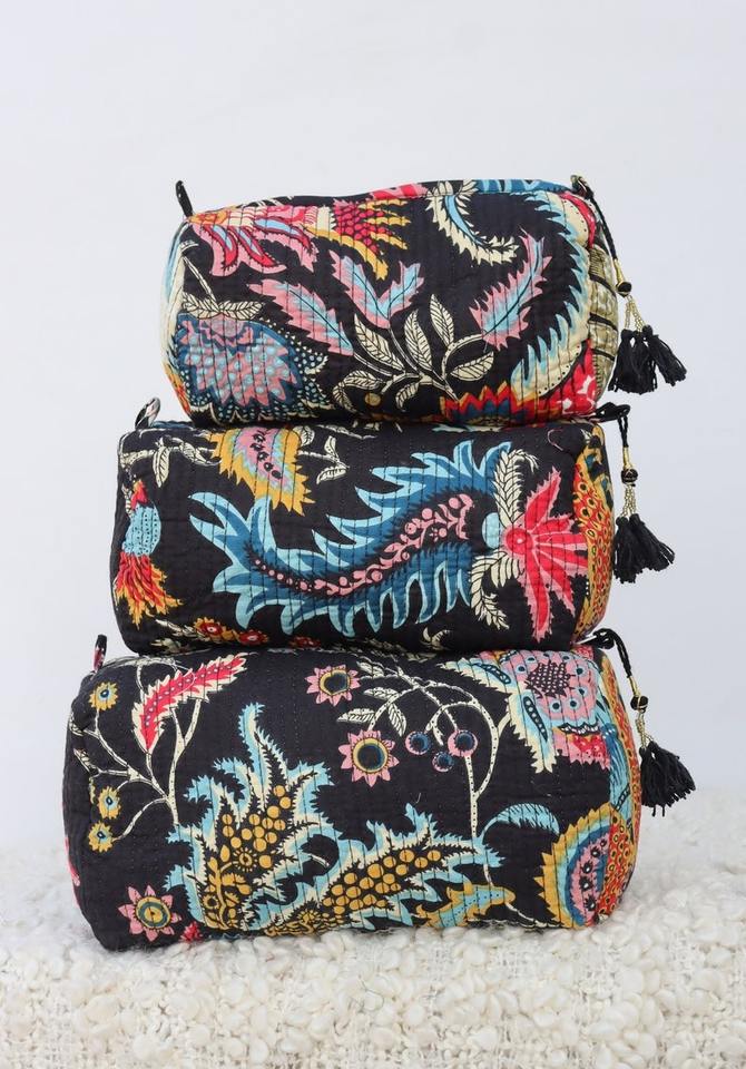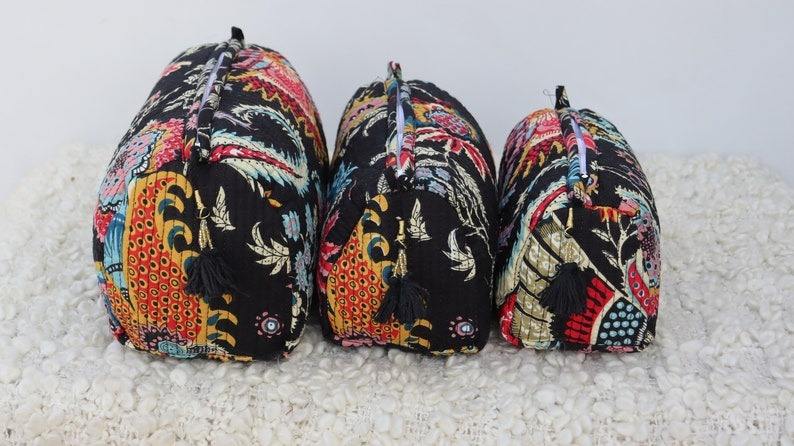 Juego de 3 bolsas de lavado acolchadas con estampado de corona de algodón indio, neceser de viaje para afeitarse, neceser con cierre de cremallera