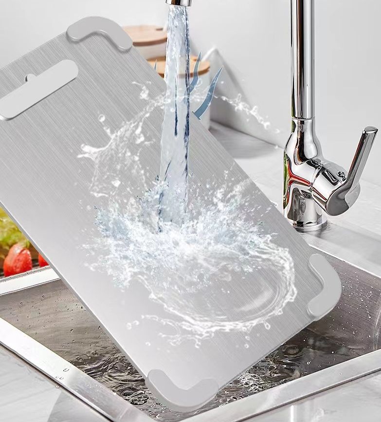 Nombre del producto:Tabla de cortar de doble cara de acero inoxidable con borde antideslizante