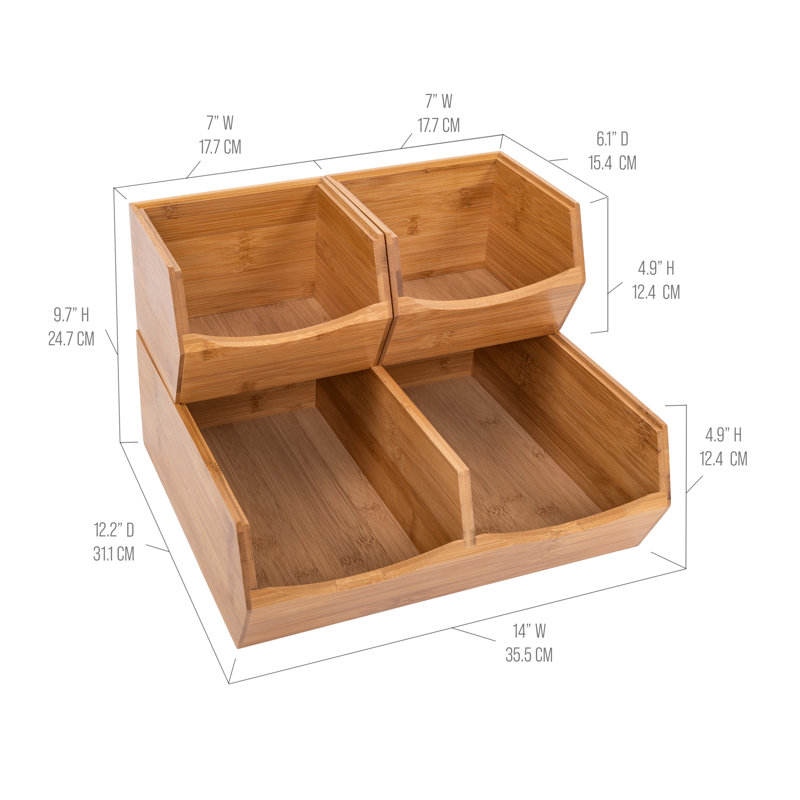 Juego de 3 contenedores de bambú apilables para almacenamiento de alimentos y contenedores