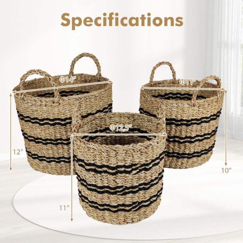 Juego de 3 Cestas de Almacenamiento Apilables con Asas, Colección de Cestas Tejidas