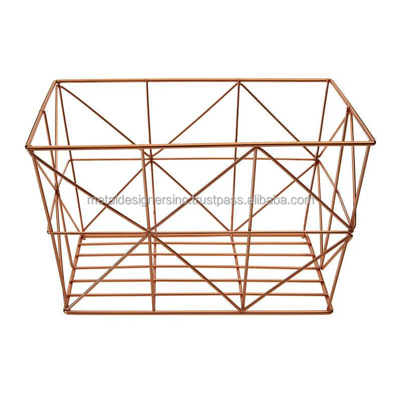Juego de 3 cestas de almacenamiento rectangulares de madera y metal con organizador multiusos Chapado en cobre para lavandería, ropa de cocina, tapa de metal