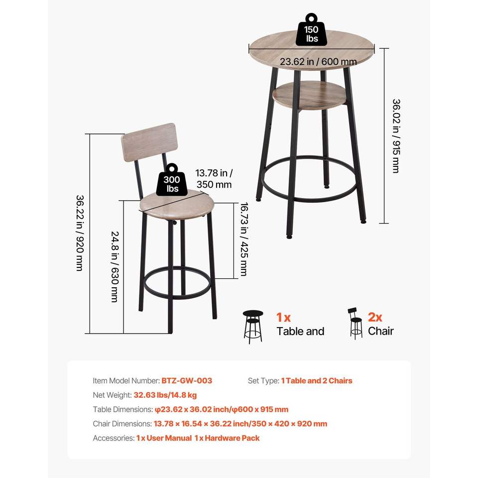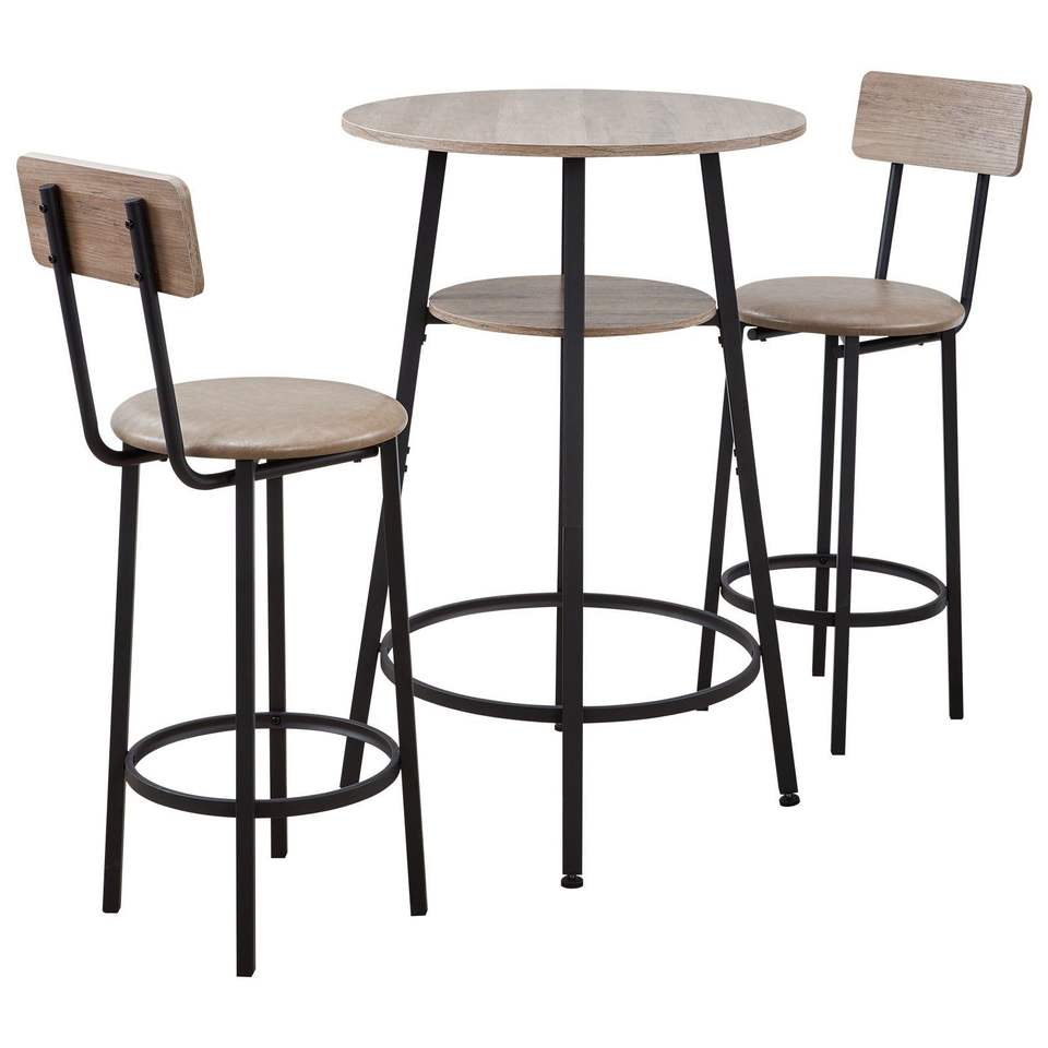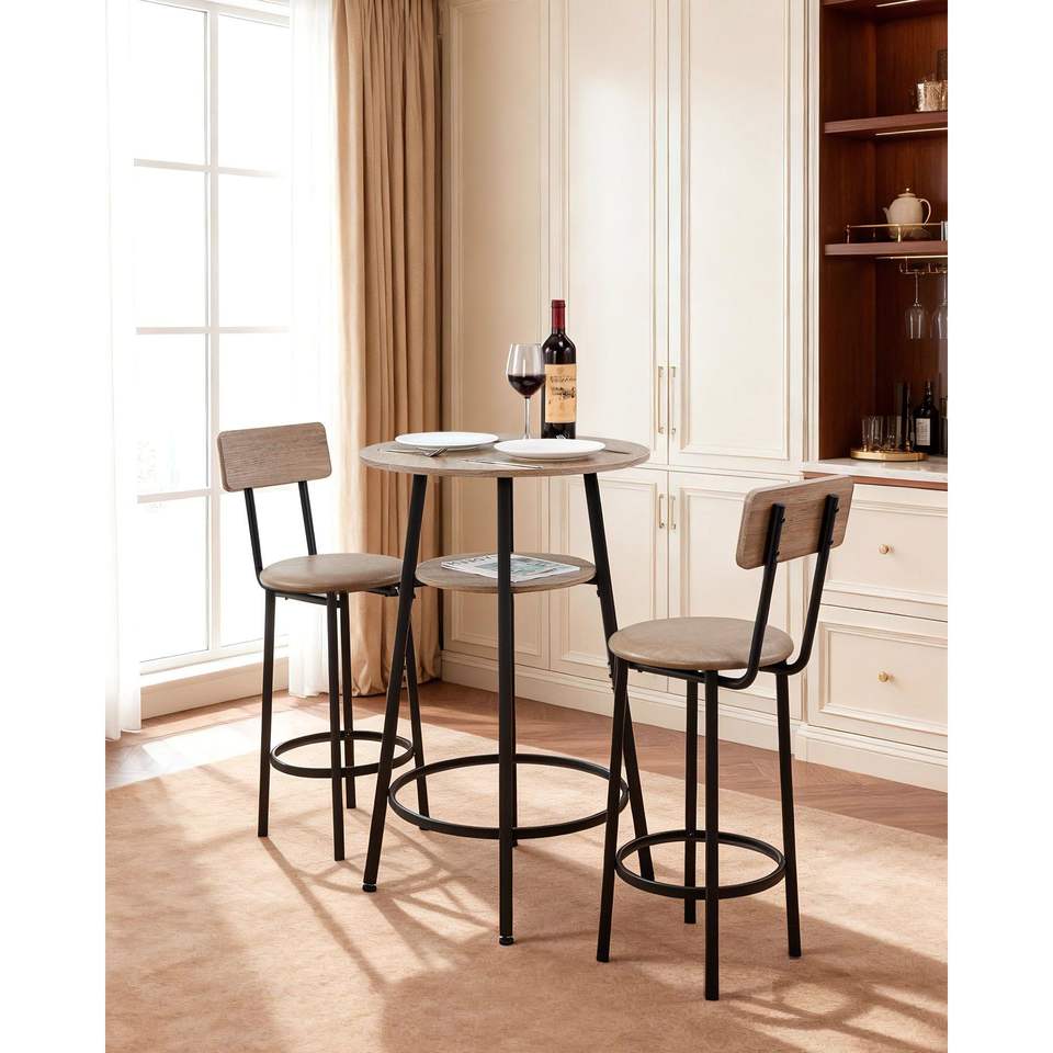 Juego de 3 mesas de bar con esquinas redondeadas de 23.5 pulgadas con dos taburetes, juego de mesa y sillas de pub