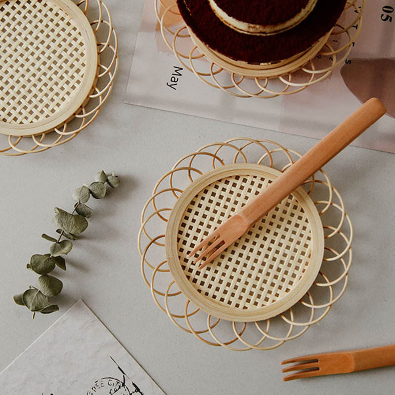 Juego de 4 cestas decorativas de bambú artesanales de madera