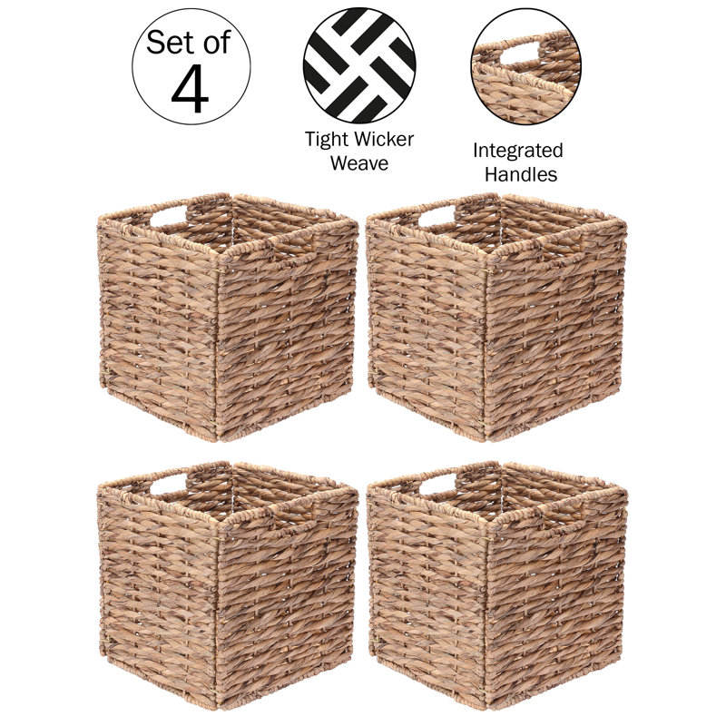 Juego de 4 cestas cuadradas tejidas hechas a mano, contenedores de almacenamiento de jacinto de agua para armario, sala de estar o decoración de baño, contenedores de mimbre