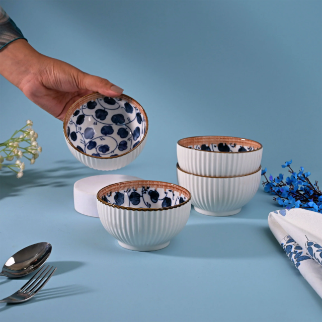 Juego de 4 Tazones de Porcelana Pintados a Mano, Vajilla de Cerámica Premium para Mesa de Comedor, Suministro al por Mayor al Mejor Precio