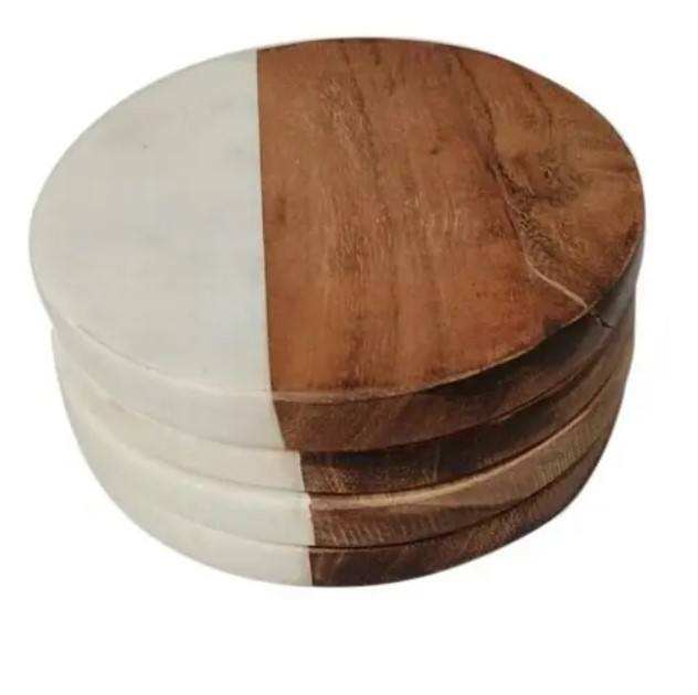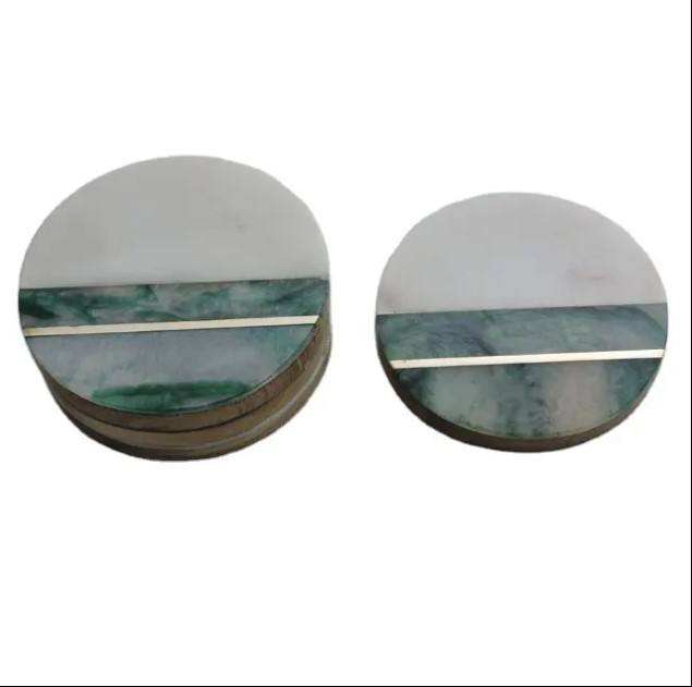 Juego de 4 Posavasos de Piedra Hechos a Mano con Incrustaciones de Mármol de 5 mm, Diseño Moderno y Ecológico de la India
