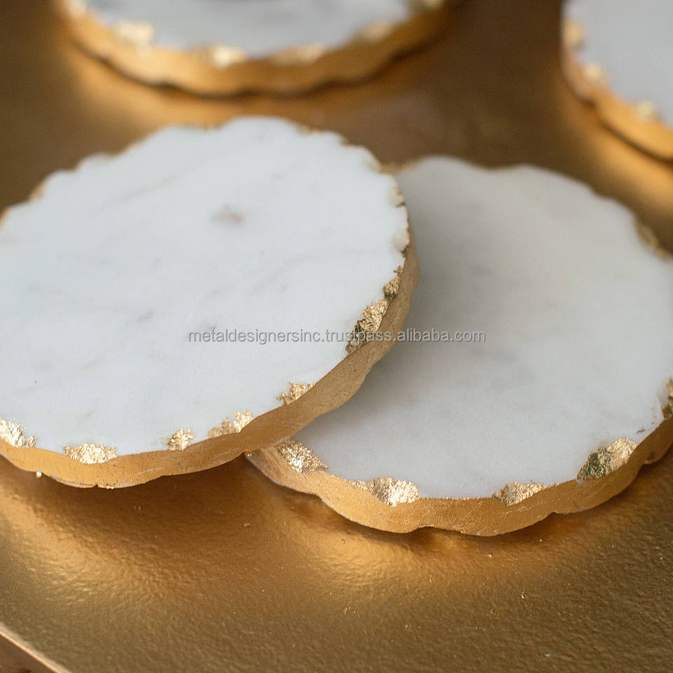 Juego de 4 posavasos de mármol con acabado definitivo para decoración de mesa y decoración del hogar, artículos de partyware para uso en posavasos con borde dorado