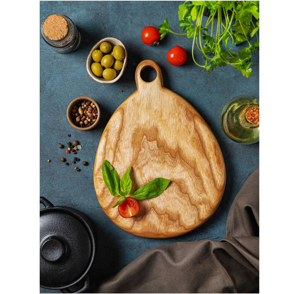 Juego de 4 piezas de tabla de cortar de madera de mango de tamaño personalizado Chesse Pizza Plato de té para uso multiusos Acabado natural