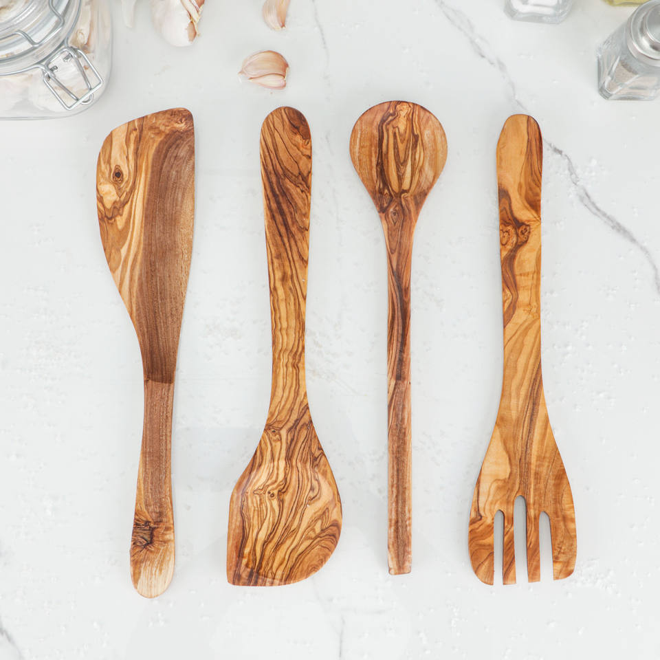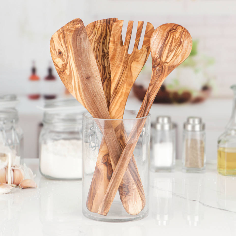 Juego De 4 Utensilios De Cocina De Madera Hechos A Mano Herramientas De Cocina Rústicas Premium Olive 5 Unidades Kit De Accesorios Multifuncional Stanle