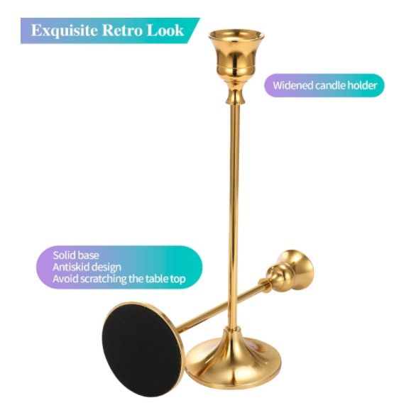 Candelabro y portavelas de oro antiguo con Soporte redondo de acero inoxidable decorativo de 3 piezas