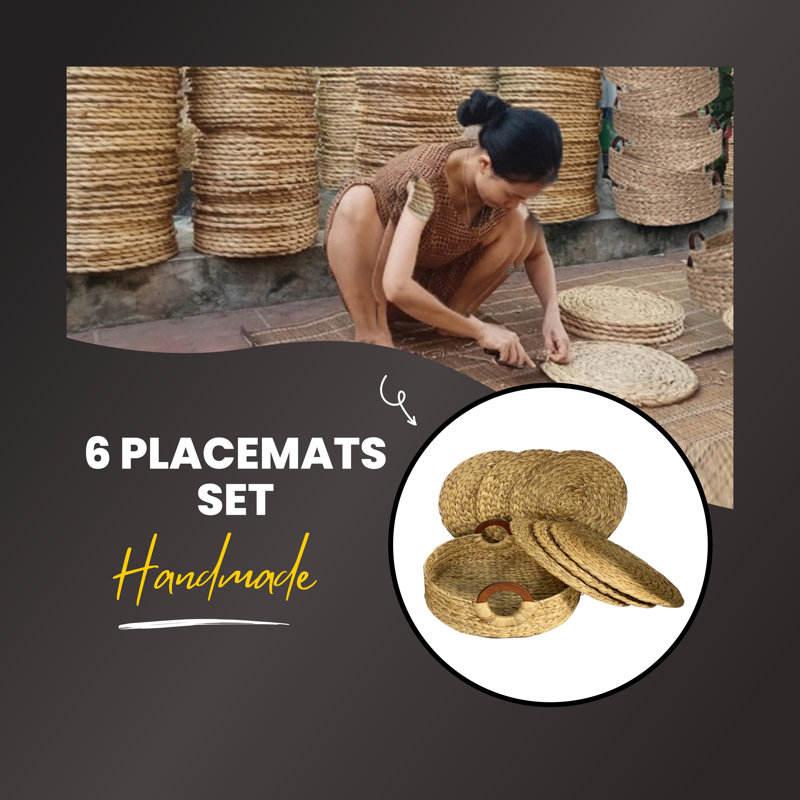 Juego de 6 manteles individuales rústicos de granja, manteles individuales redondos de Jacinto con soporte, colección de manteles individuales