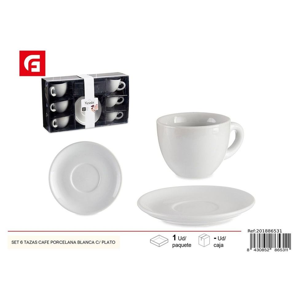 Juego de 6 tazas de café de porcelana blanca con platillos-Vidrio y cerámica