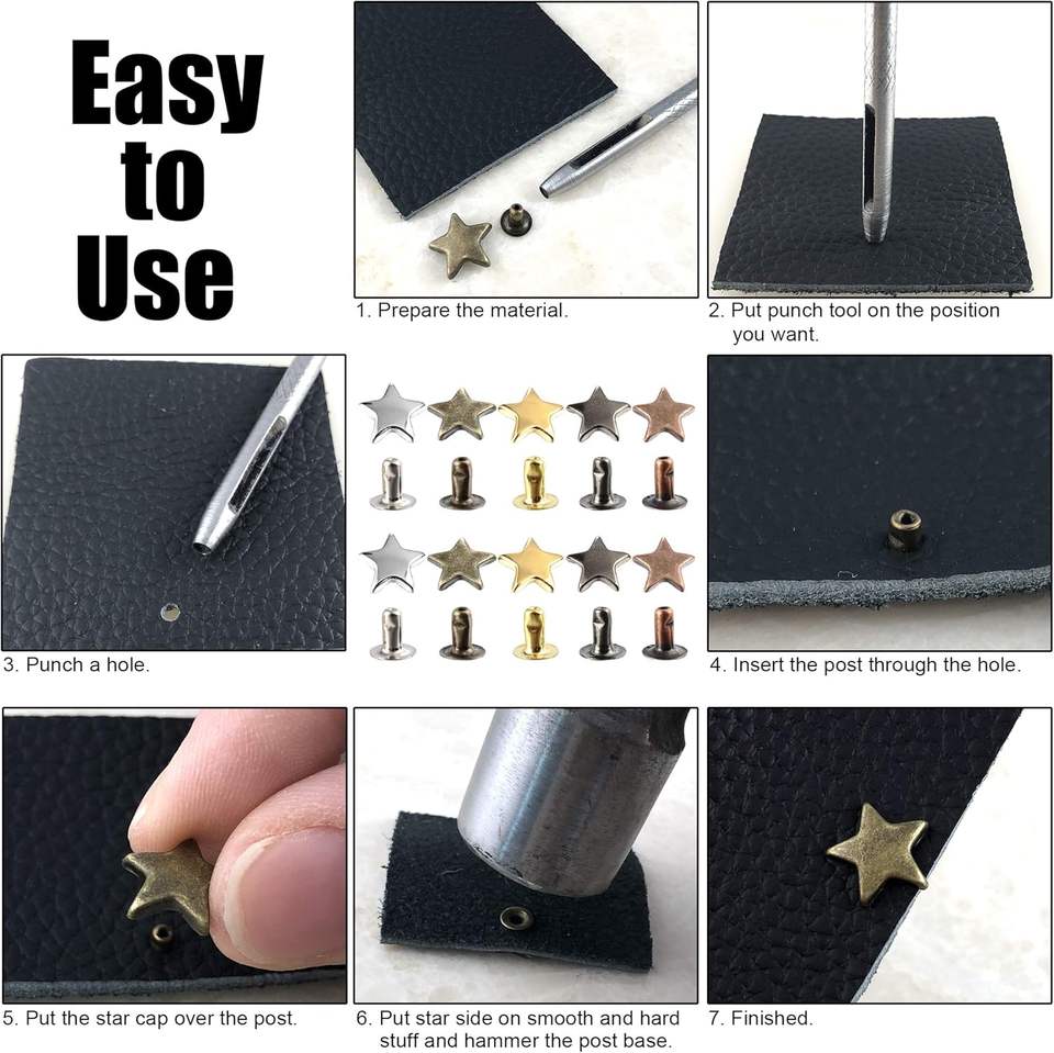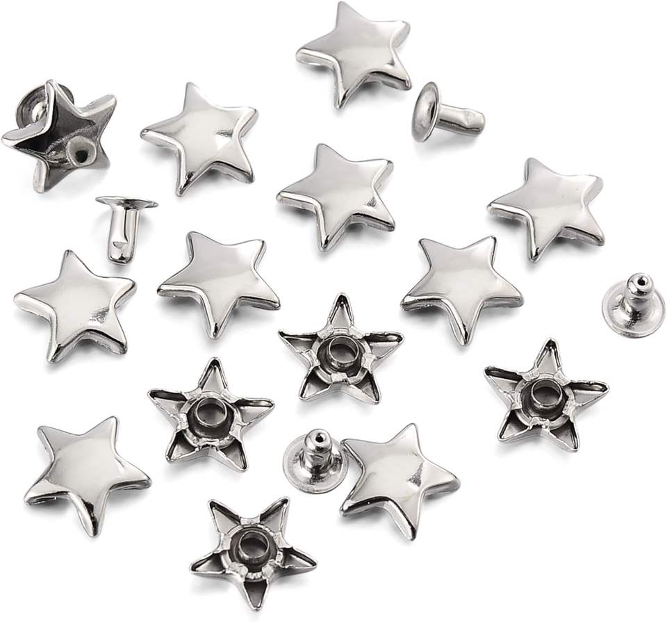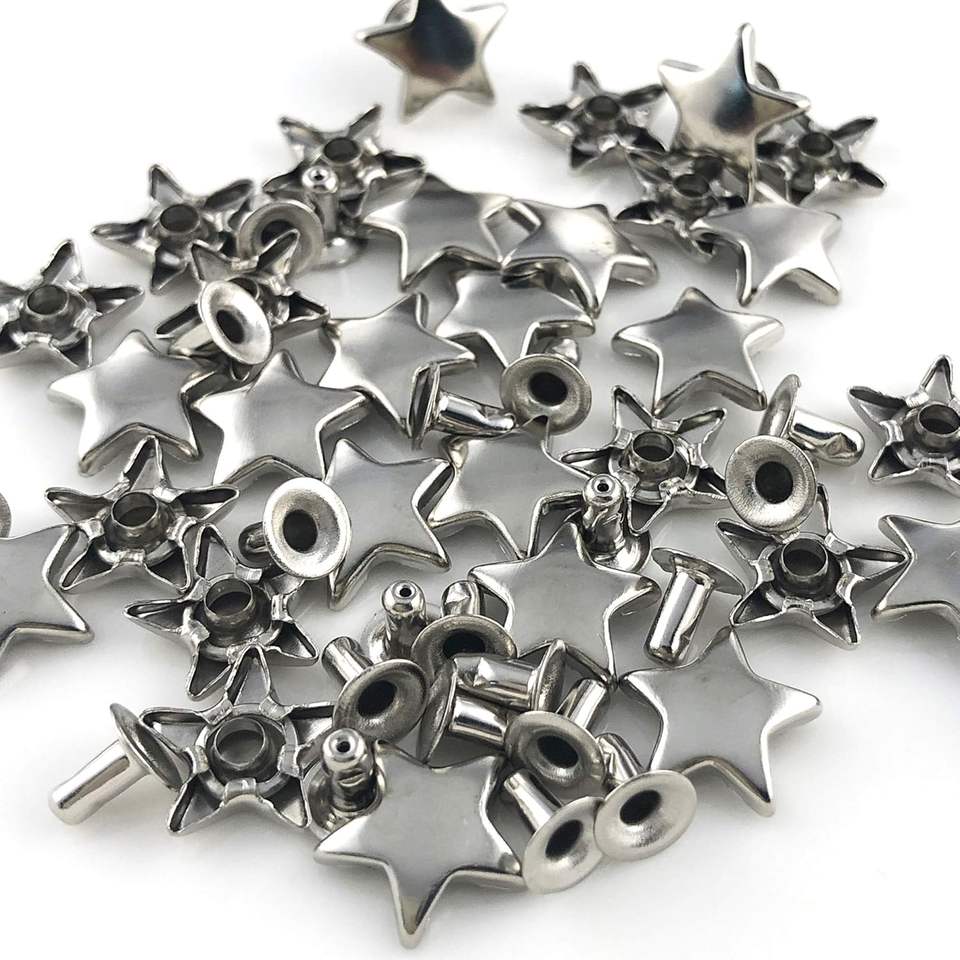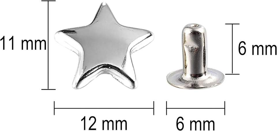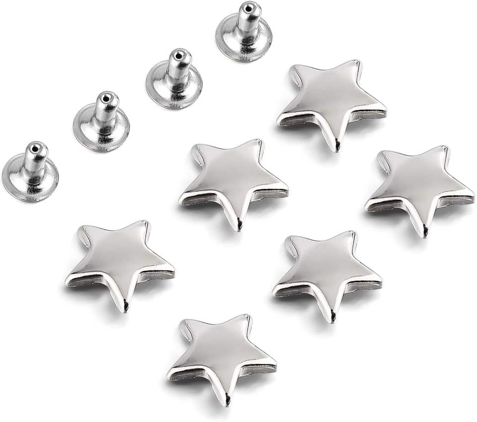 Juego de remaches de estrella plateados MM para cuero, remaches de estrella, remaches para prendas, remaches de cuero, tachuelas y púas para artesanía en cuero y ropa.