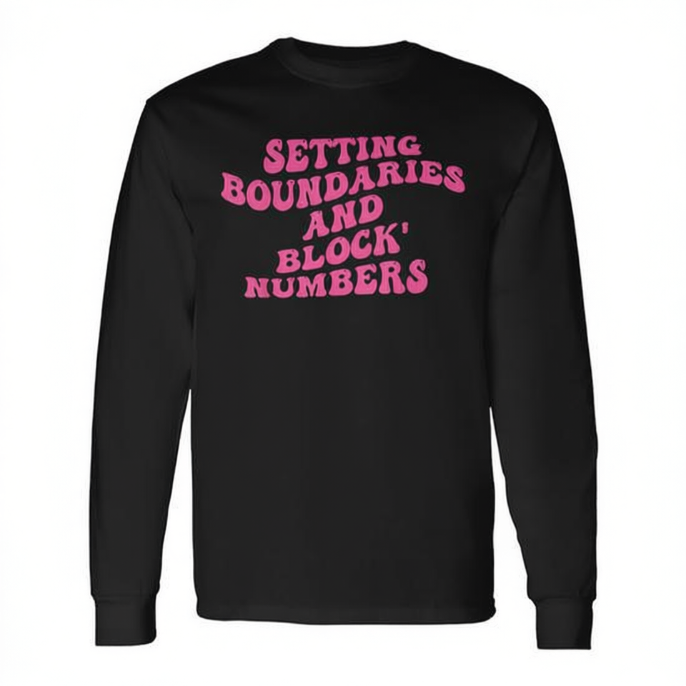 Camiseta de manga larga con estampado de números y frases sobre el establecimiento de límites