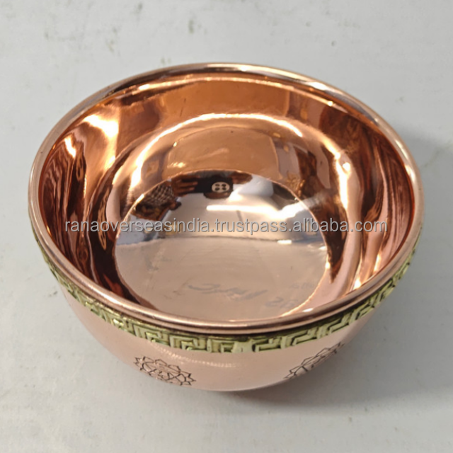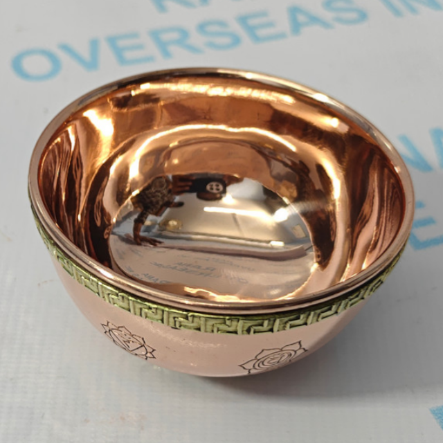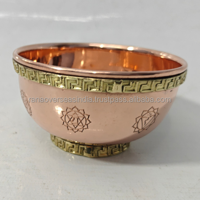 Cuenco de Cobre Grabado con los Siete Chakras, Rana Overseas Inc, Cuenco para Meditación, Reiki, Sanación, Decoración de Altar Espiritual