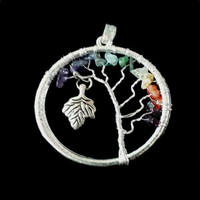 Seven Chakra Gemstone Chips:Metal Pendent