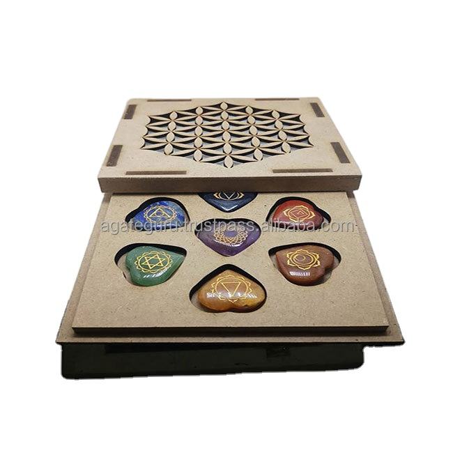 Caja de piedra GURU de ágata respetuosa con el medio ambiente hecha a mano con forma de corazón de siete Chakras con juego de piedras preciosas Reiki