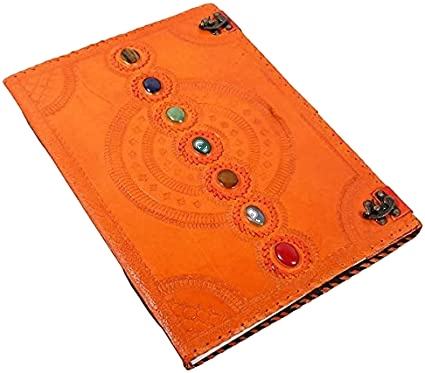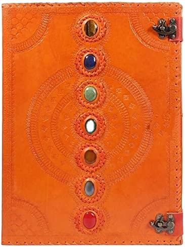 Seven chacra-Libreta de cuero Jumbo hecha a mano con piedra Medieval en relieve, libro de sombras, diario de oficina, diario de la universidad, boceto de ciencia ficción