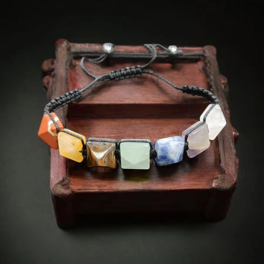 Pulseras piramidales de ágata hechas a mano naturales de Seven Chakra, joyería con cuentas de moda al por mayor de Amayra Crystals Exports