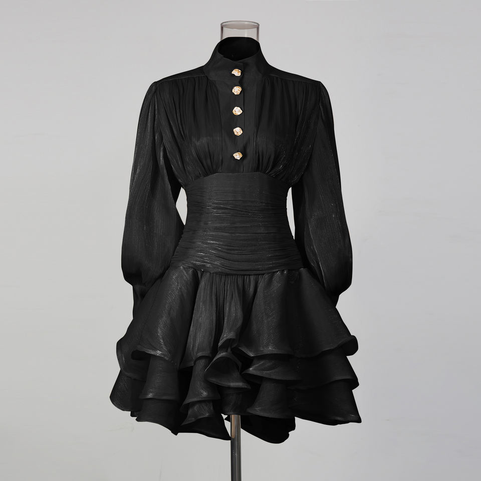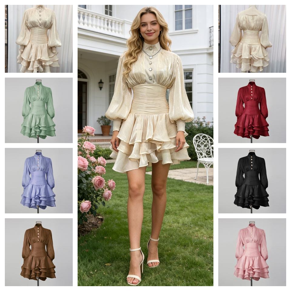 Vestido de Alta Gama con Cuello Alto y Botones Decorativos, Estilo Retro, Cintura Ajustada, Siete Colores, Ramadán 2026