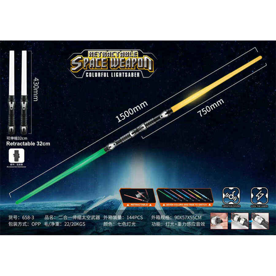 Juguetes Metálicos de Armas Espaciales y Sables de Luz Eléctricos Retráctiles de Siete Colores con Doble Cabezal y Efectos de Luz y Sonido