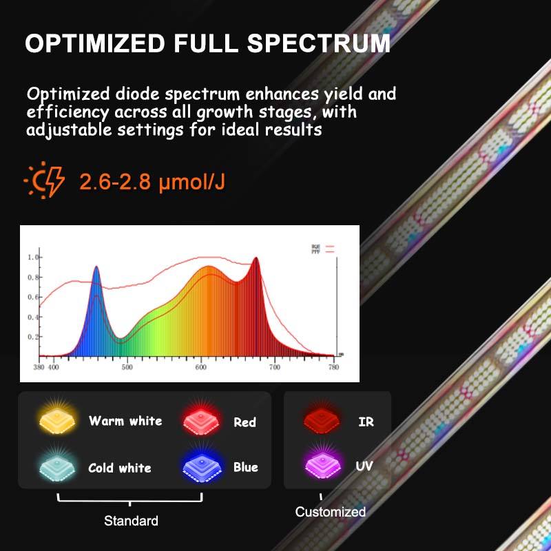 Espectro completo:Luz de espectro completo + 660nm Luz roja de la planta + Azul mejorado