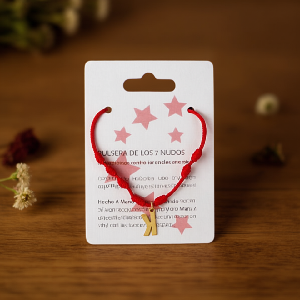 Pulsera Angelina de Siete Nudos con Hilo Rojo y Letra K, Amuleto de Acero Inoxidable Hecho a Mano, Joyería de Protección Unisex, Regalo