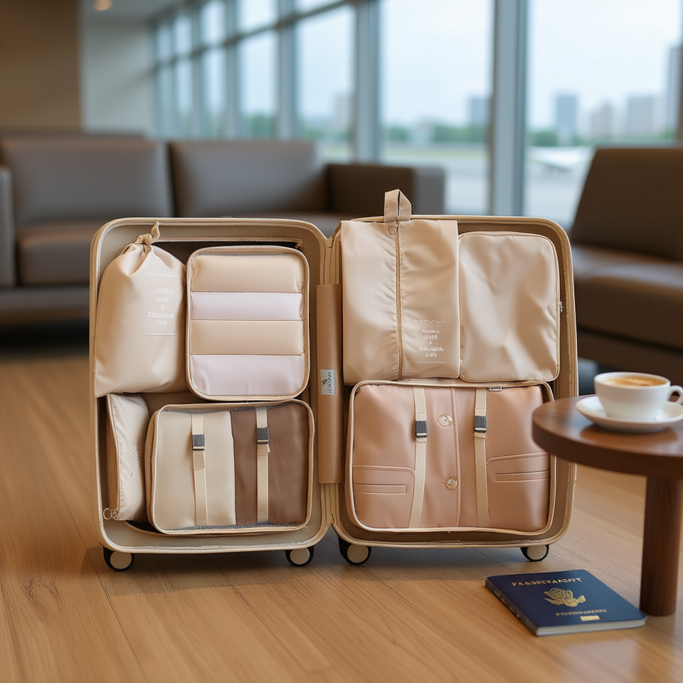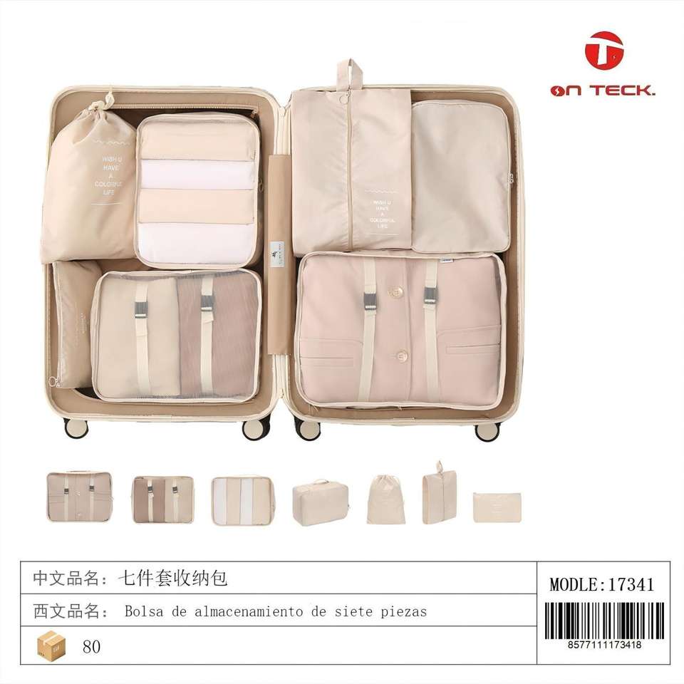 Juego de Bolsas de Almacenamiento On Teck de Siete Piezas, Organizador de Viaje de 20-35L, Poliéster, Plegable, Diseño Minimalista, Forma Rectangular