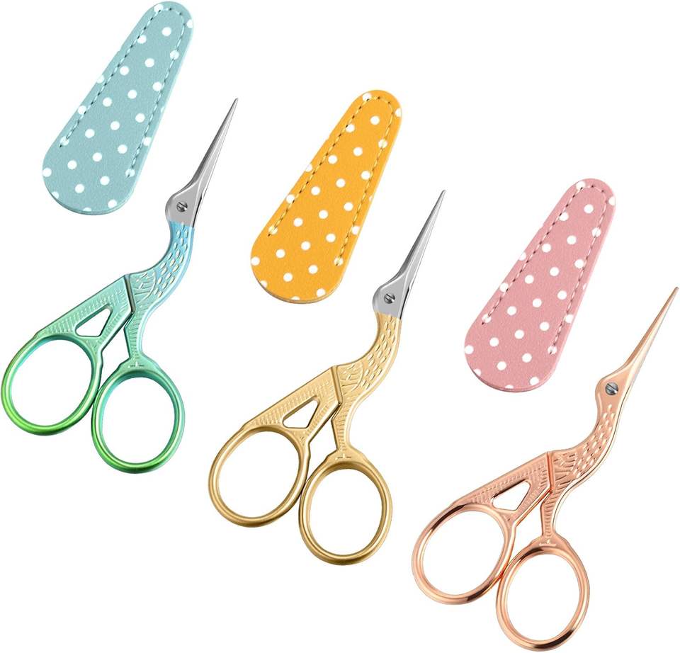 Tijeras de cigüeña para bordado de costura, cubierta de tijeras de cuero, tijeras pequeñas con forma de grúa de acero inoxidable para herramienta de costura Manual