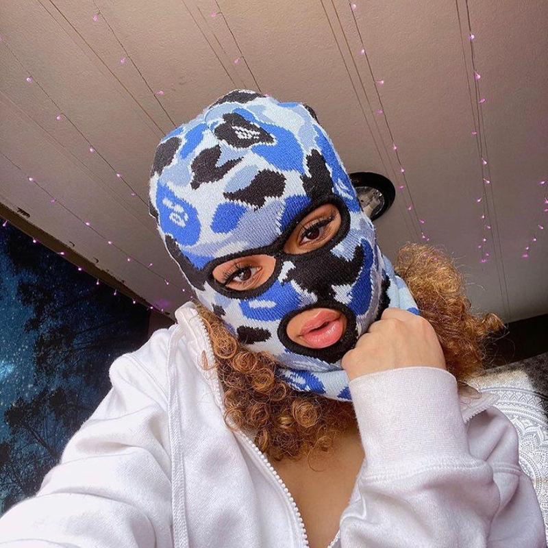 Sewingman 2021 Diseñador Bordado personalizado Logo 3 agujeros Cubierta de cara completa Pink Bandit Pasamontañas Skimask Winter Cagoule Hat Máscara de esquí