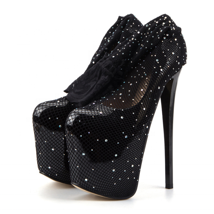 Zapatos de plataforma alta de rejilla para mujer, estilo T-stage, talla 50, para bailarinas de pole dance, tacones de aguja de 19 cm, zapatos de modelo