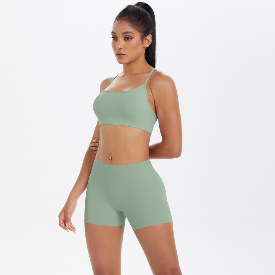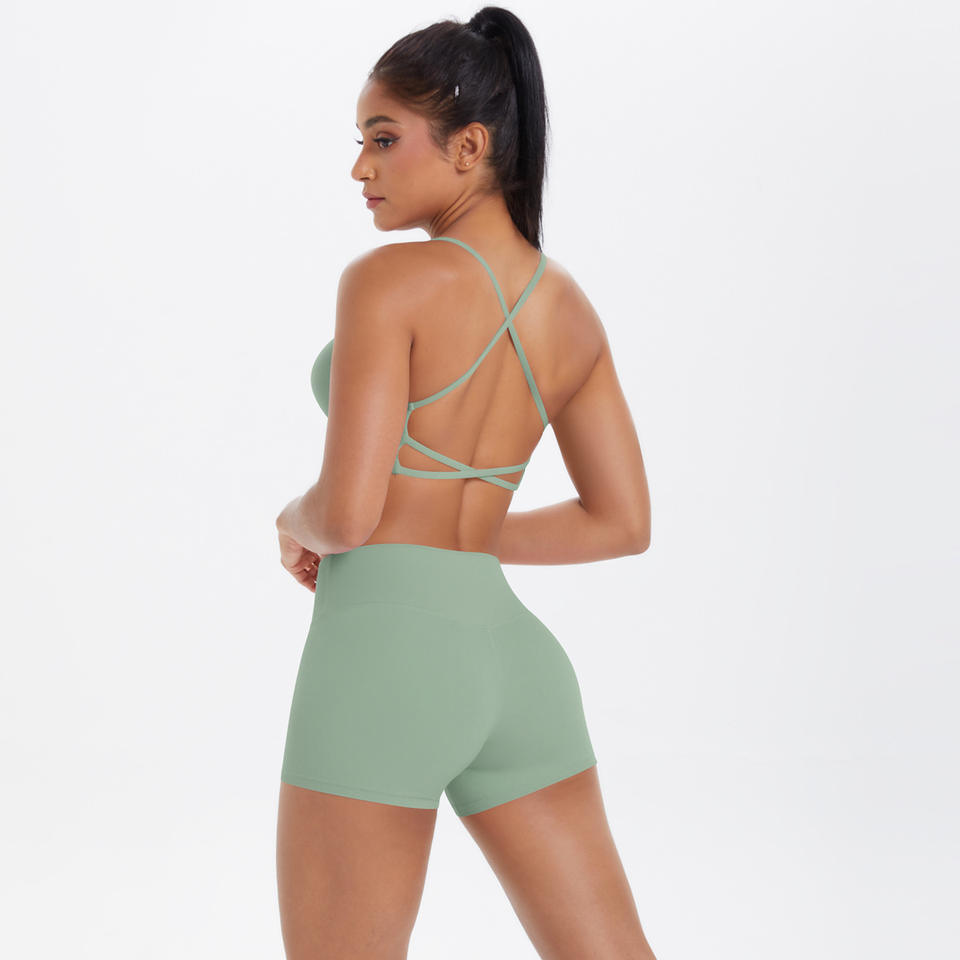 Conjunto de entrenamiento Sexy Cross Strap-Pantalones cortos de Yoga de secado rápido y Sujetador deportivo para gimnasio Senderismo