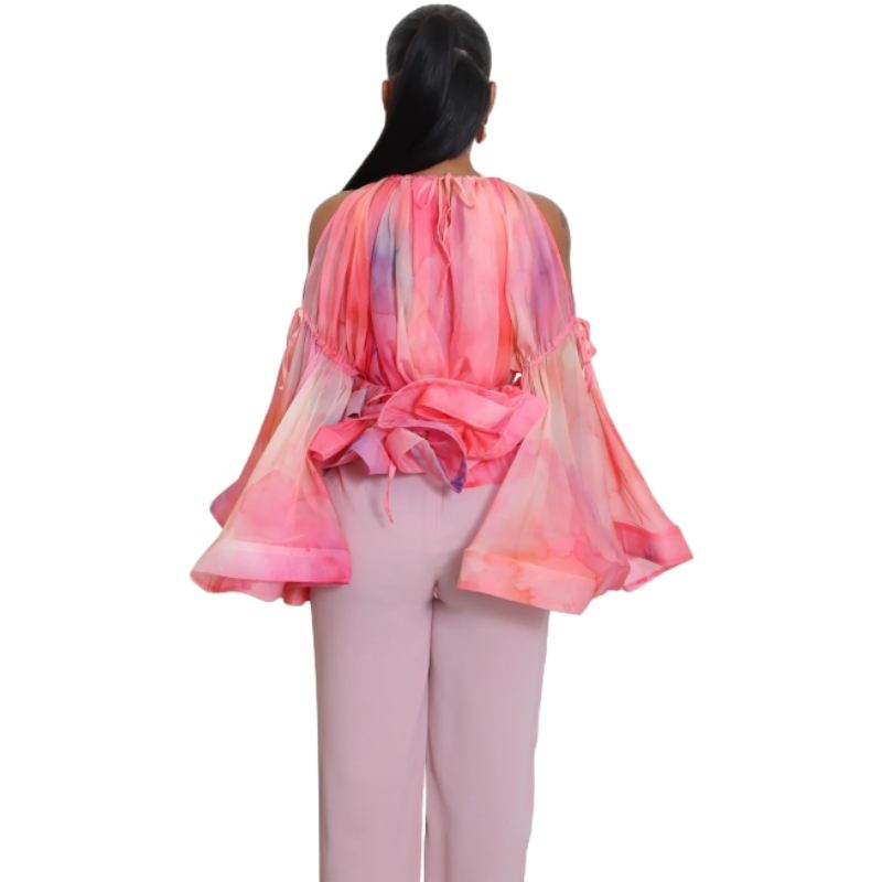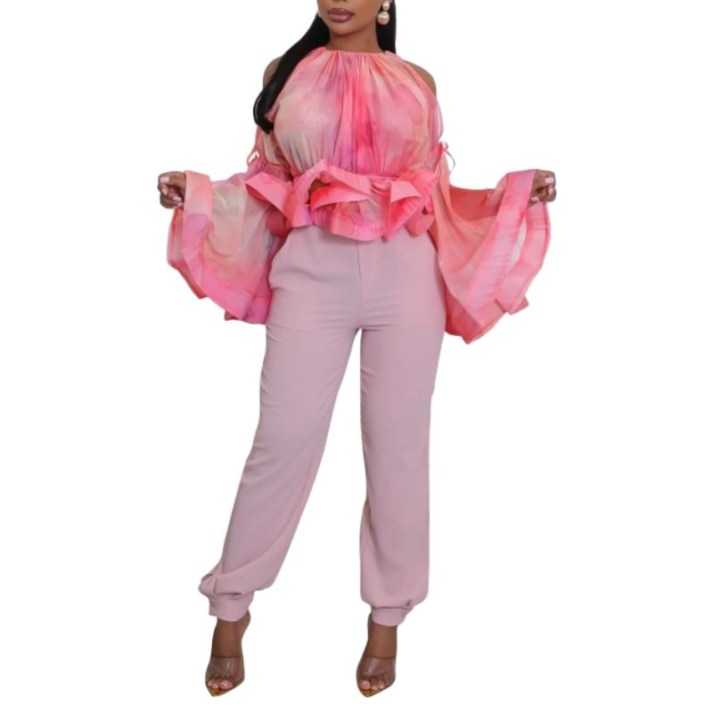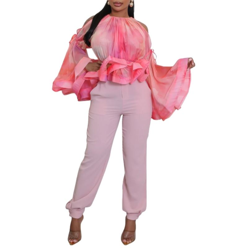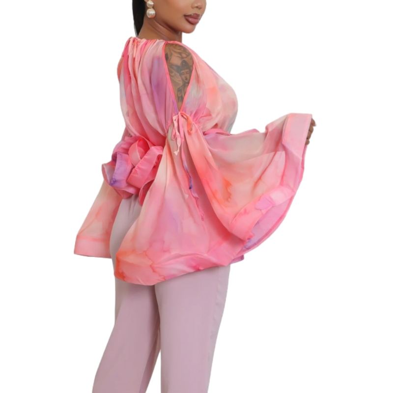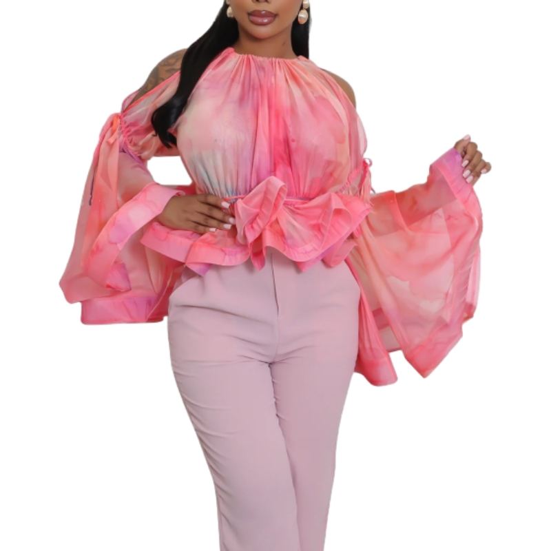 Blusa de Moda para Mujer con Estampado de Grafiti Sexy, sin Tirantes, de Malla, con Mangas Acampanadas