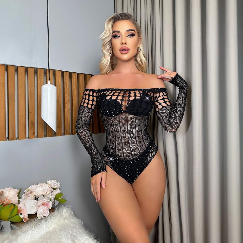 Medias de red transparentes y sexys con pedrería completa, estilo bikini, para mujer