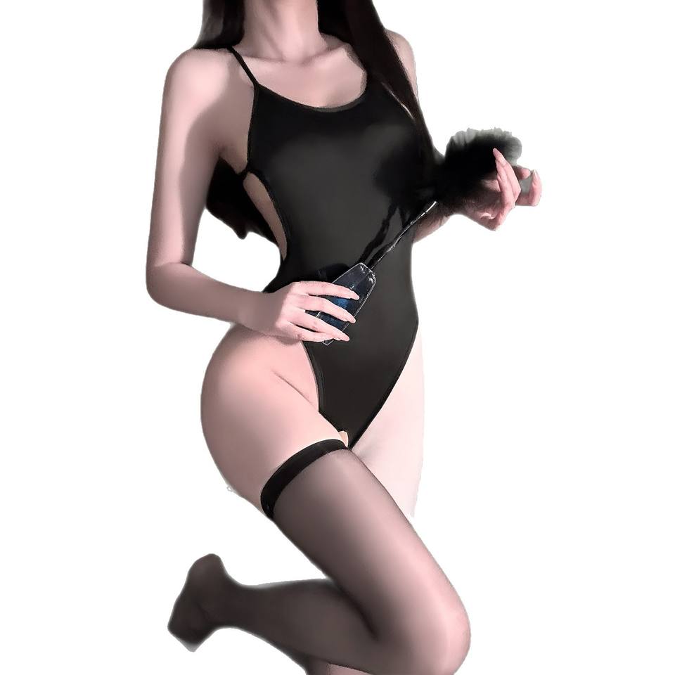 Conjunto de Vestido Halter Mini Cheongsam Estilo Tinta Sexy, Lencería Vintage YL Dobby Semitransparente con Lazo y Control Ligero, Ajuste Delgado