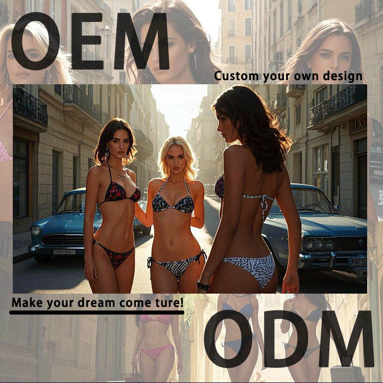 Conjunto de Bikini Rosa Sexy para Mujer, Traje de Baño de Dos Piezas con Triángulo, Estilo Veraniego para Venta al por Mayor y Marca Personalizada