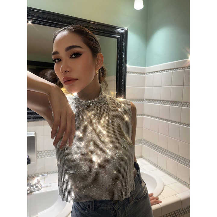 Novedades 2022 verano Sexy Bling mujeres Crop Top chaleco brillante mujeres Tops fiesta