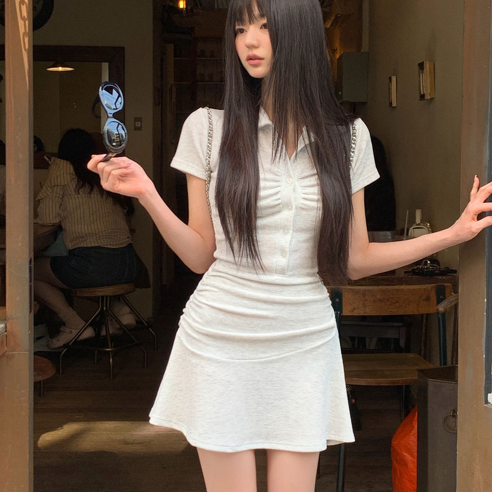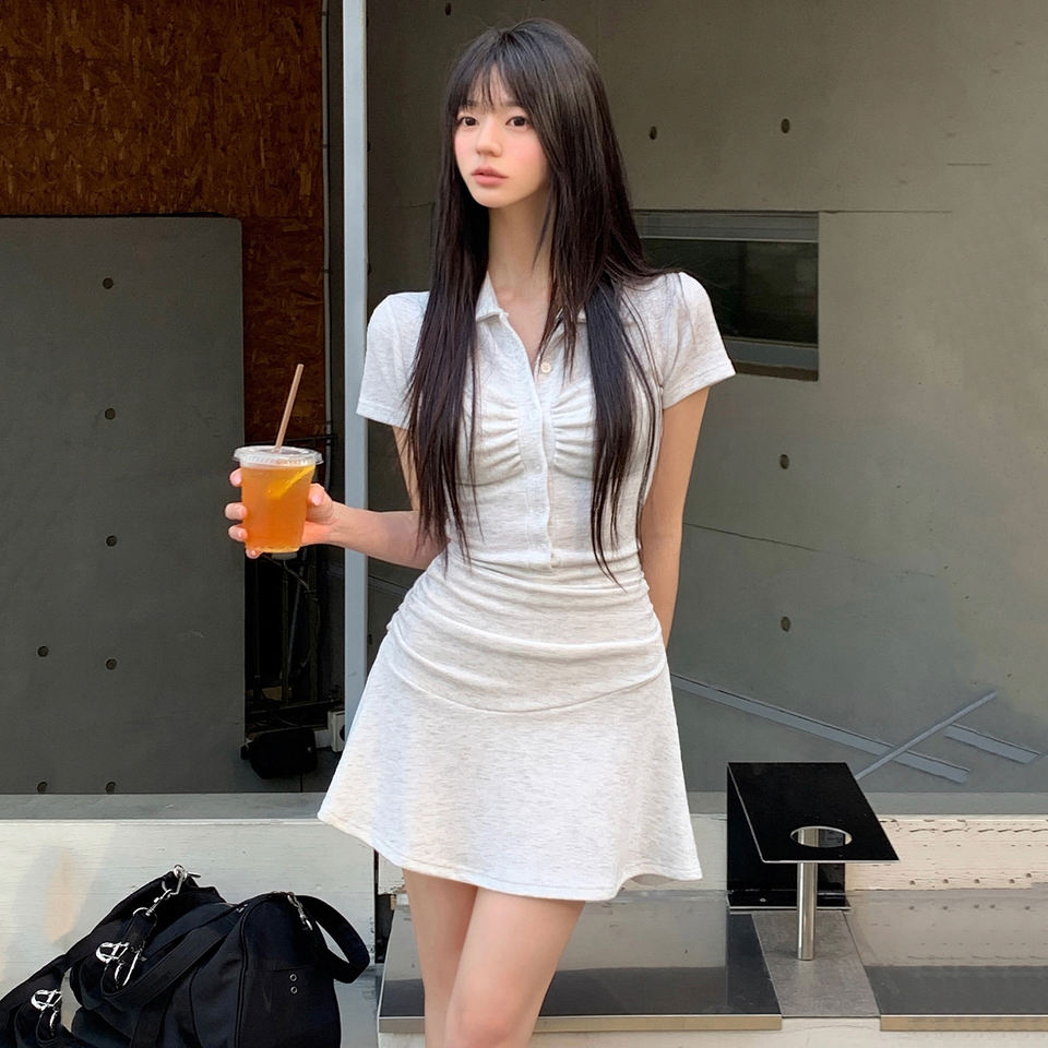 Vestido Mini Sexy Ajustado con Cuello Polo y Manga Corta para Mujer, Ropa de Club, Color Sólido, Vestido Ceñido