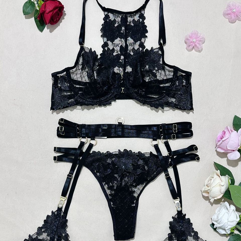 Conjunto de sujetador y braga transparente de color sólido para mujer, conjunto de lencería erótica de lujo para mujer