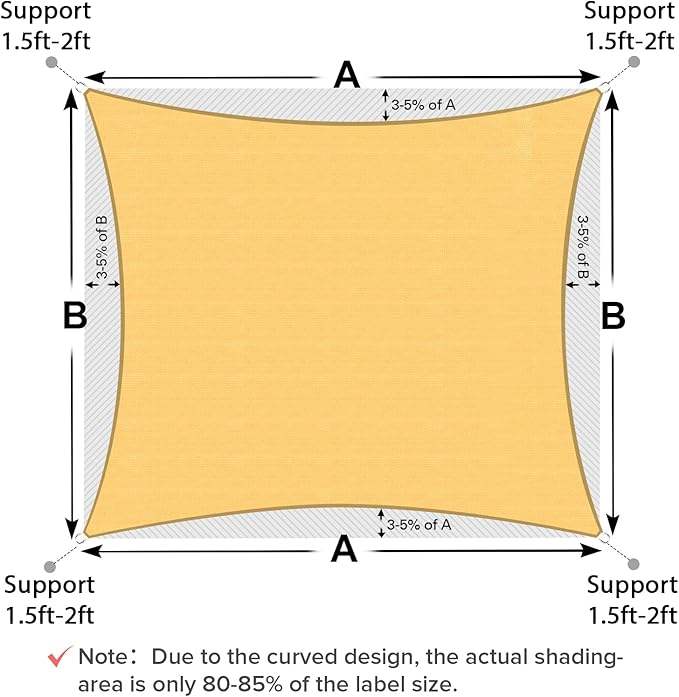 Toldo Rectangular Shade&Beyond de 12'X16', Color Arena, para Patio, Jardín o Terraza