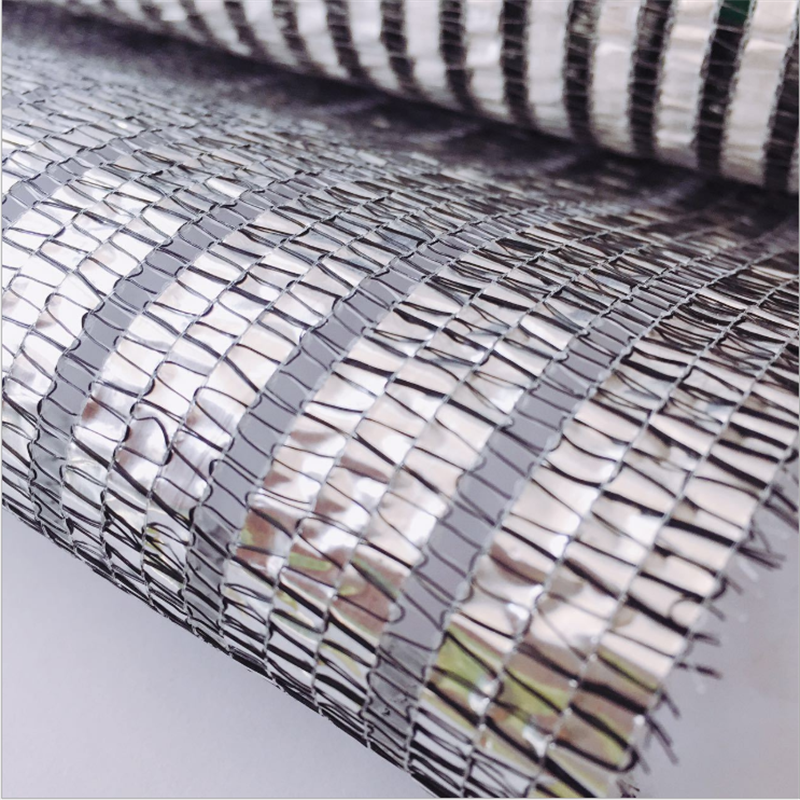 Material:Lámina de aluminio + película transparente PET + hilo de poliéster FDY