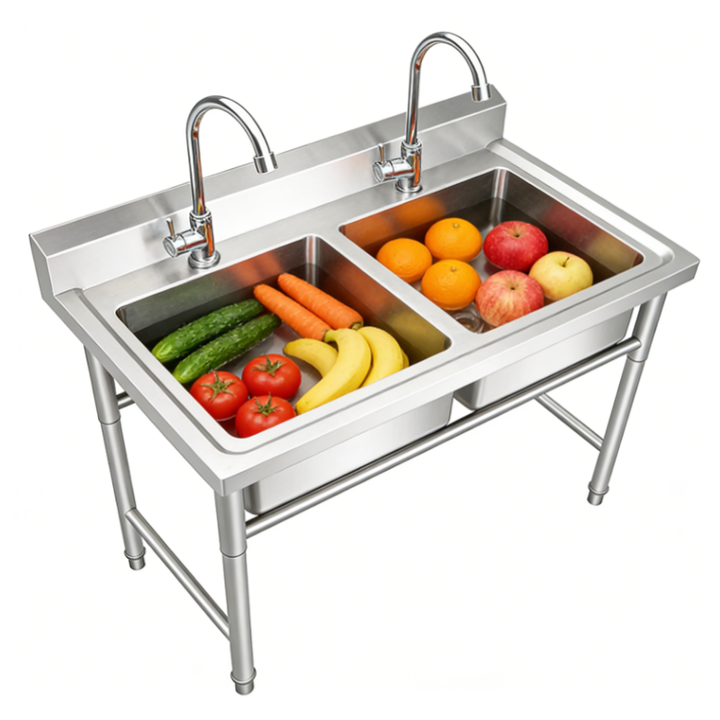 Fregadero doble de acero inoxidable resistente a olores para mercado de mariscos, venta directa de fábrica de Shandong