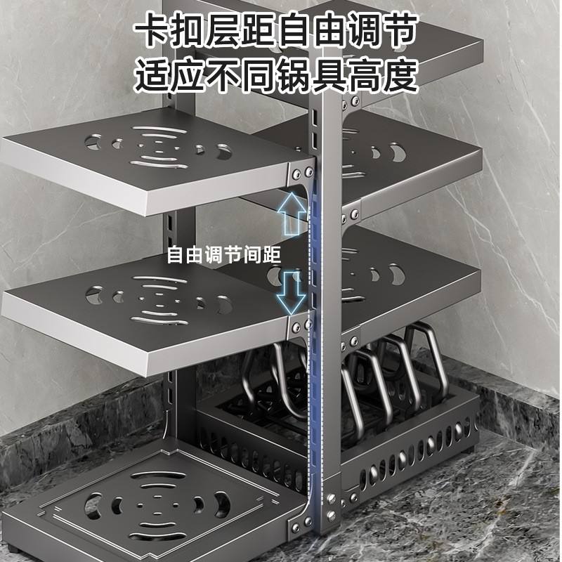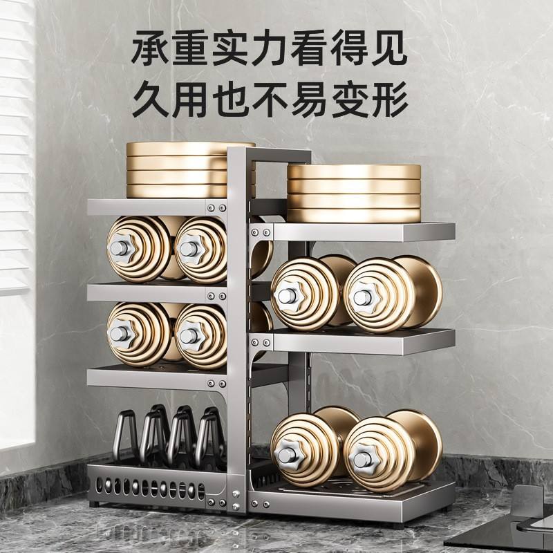 Estante ajustable para ollas Shangnaisi, organizador de almacenamiento de varios niveles para debajo del fregadero, para ollas, tapas y platos, con una profundidad de 8-11.9 pulgadas.