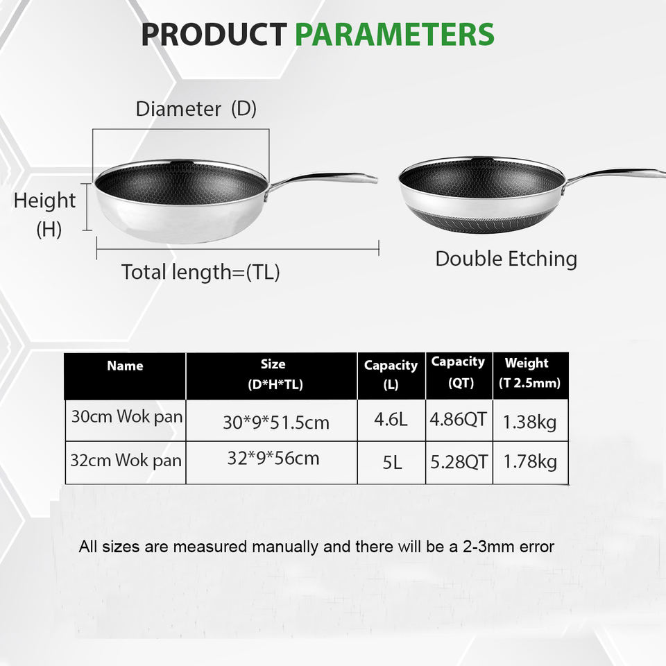 Nombre del producto:Wok antiadherente de acero inoxidable 304